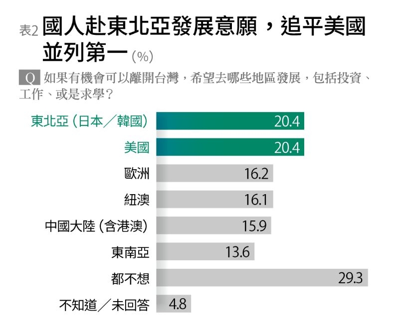 - 國人最想去哪裡發展?東北亞(日本、韓國)躍升與美國並列第一