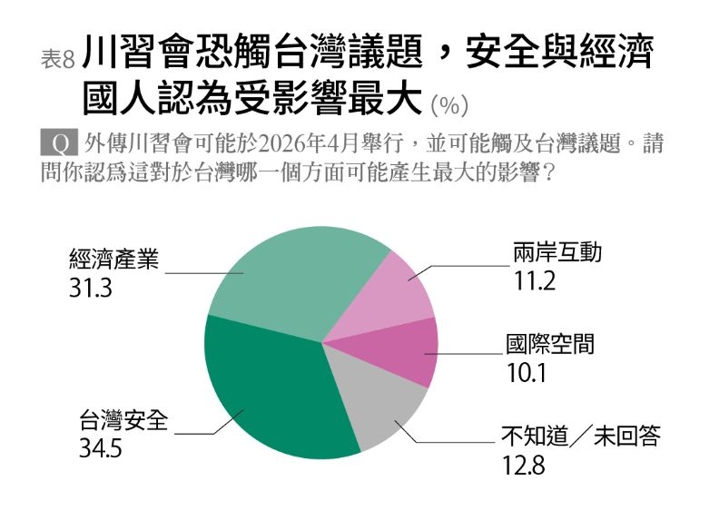 - 逾五成民眾擔憂台灣成川習會交換議題,逾3成認為政府應優先穩定兩岸